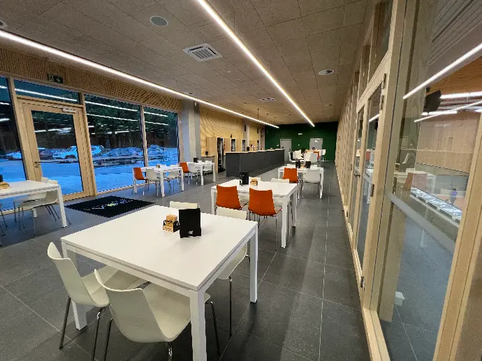 Avec ses 155 m² et son accès direct aux gradins ainsi qu’à une terrasse extérieure, la cafétéria du Centre Sportif de Gouvy est le lieu idéal pour se retrouver avant ou après l’activité sportive. Lumineuse, spacieuse et équipée, elle est pensée pour accueillir sportifs, accompagnants et spectateurs dans un cadre chaleureux.